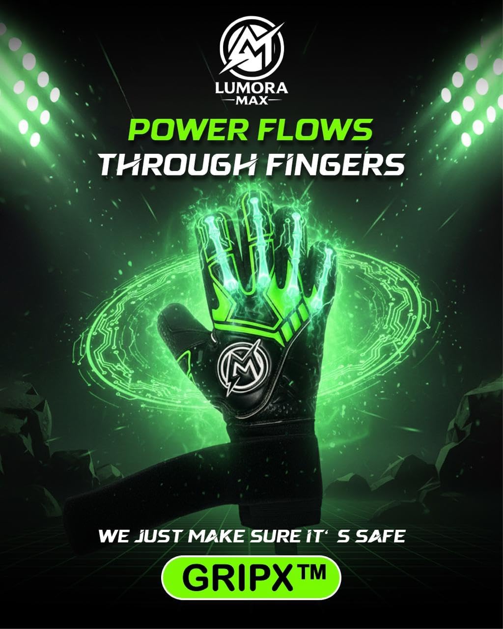 LUMORA MAX Goalkeeper Gloves – Ultimate Grip, Comfort & Control Unleash Your Inner Guardian. The Lumora Max Goalkeeping Gloves are engineered for serious goalkeepers who demand professional-level performance. Designed with precision materials and innovative features, these gloves offer unmatched grip, comfort, and durability – so you can make every save with confidence.