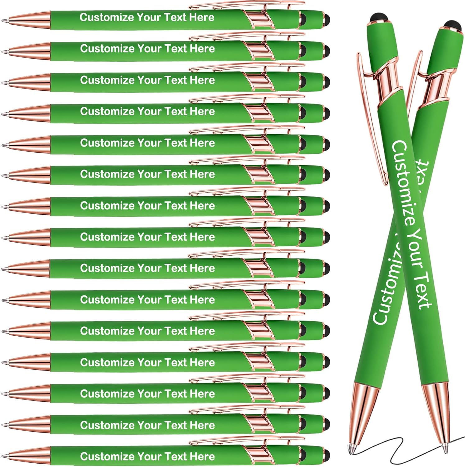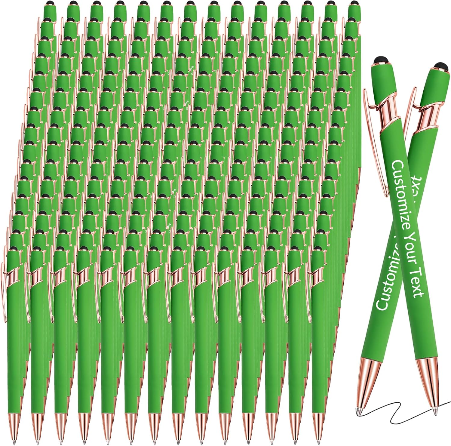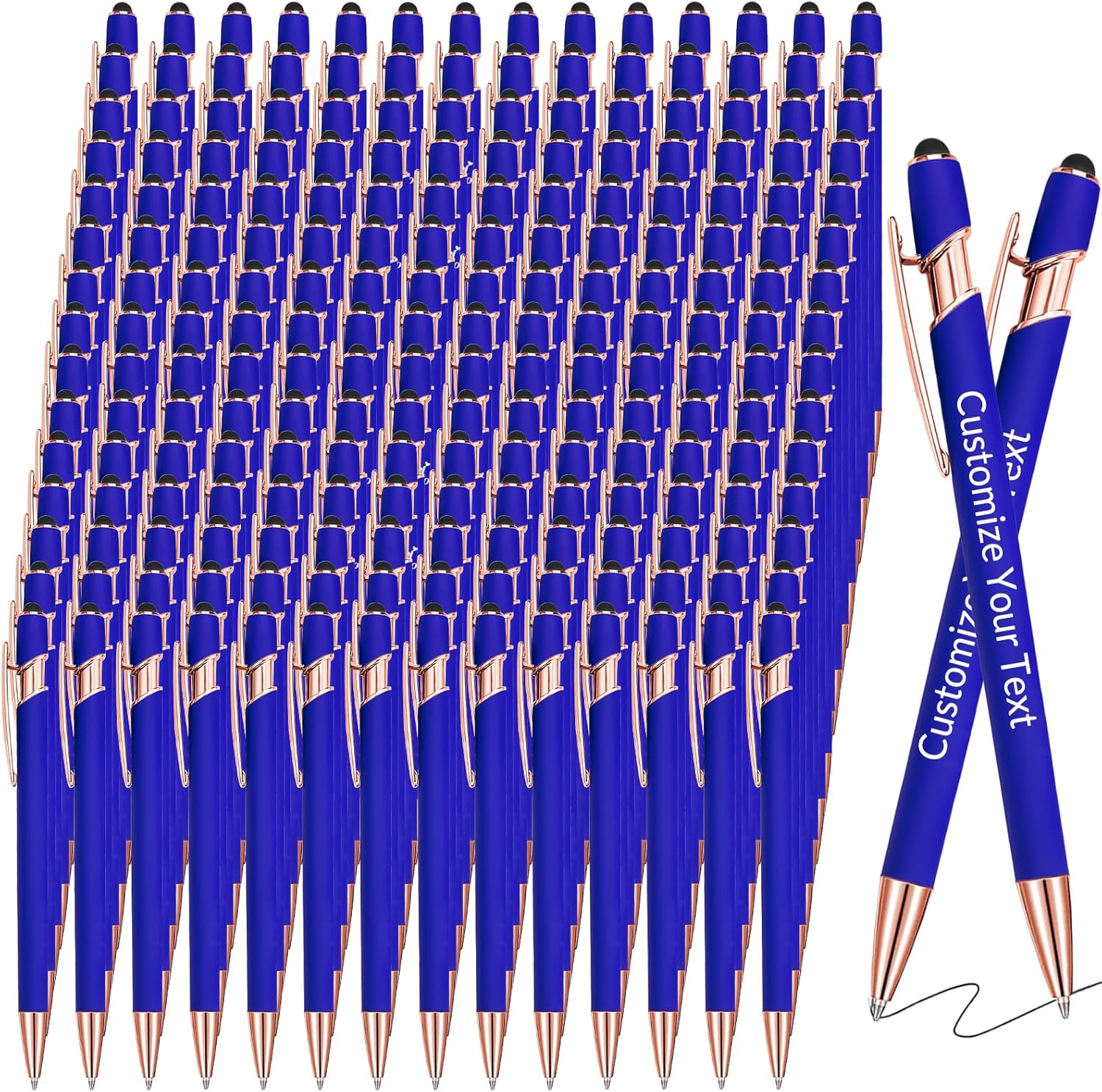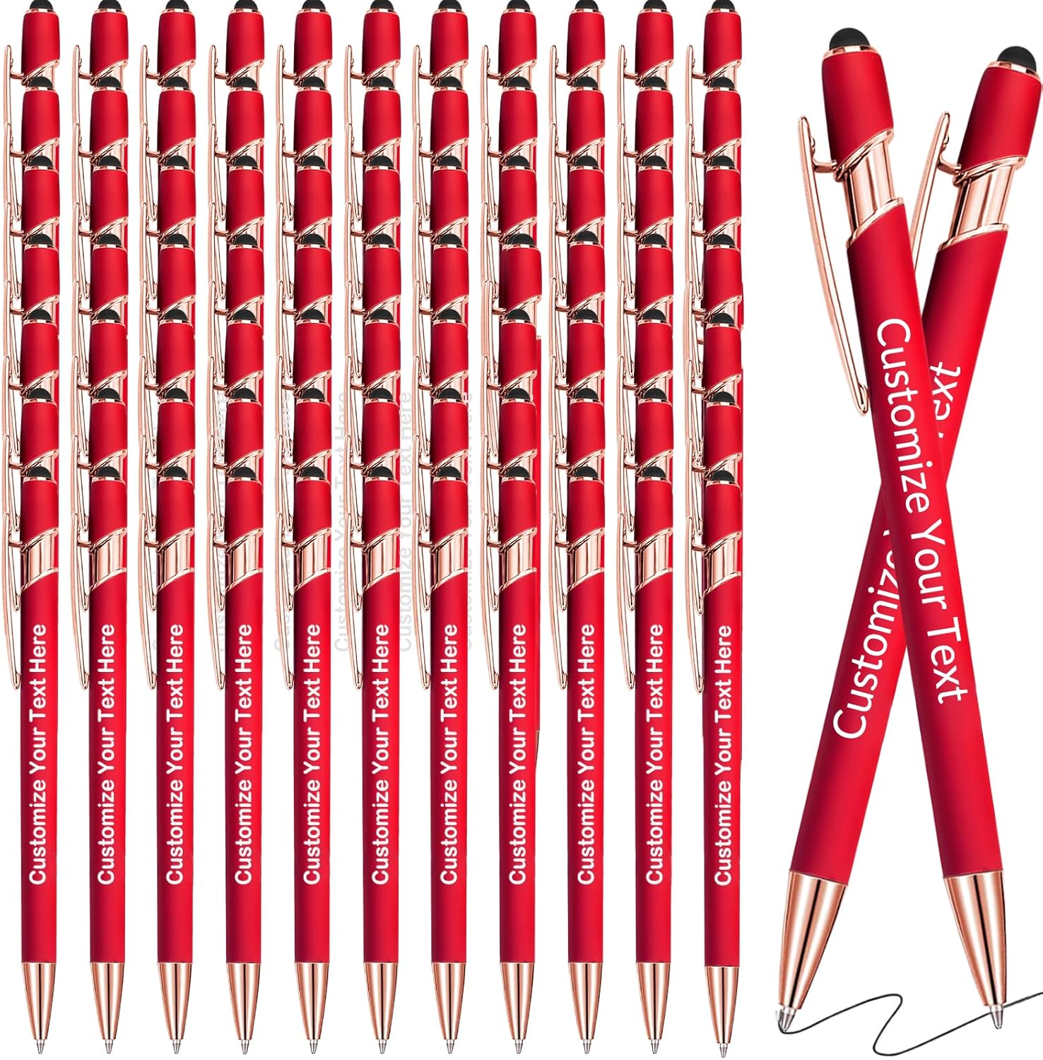 Ink: Black ink Laser Engraving: Will not fade, keep for a long time. Quantity: 1/10/20/30/50/100/150/200/300 set of personalized pen Custom Pens Color: Red/Blue/Black/White/Purple/Light Green/Pink/Rose Gold/Dark Red. Customize Pens: Up to 2 lines can be customized, each line can be up to 35 characters (including spaces). We can accept customized text in any language. If you need to upload your own logo or customize different text on each pen, please contact us.